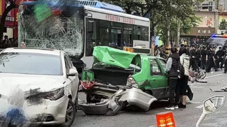 On Chinese social media, several graphic videos of the aftermath showed bodies splayed across the street amid auto wreckage, some of which were pinned beneath the bus.