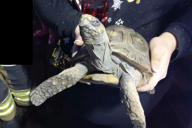 A 45-year-old tortoise almost set his owners’ home on fire on Christmas Day after pushing a heat lamp onto its bedding.